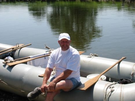 • Tom und Jens steigen am Dobritzer Damm auf's Boot