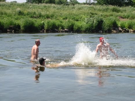 • Wir finden eine klasse Stelle zum Baden in der Mulde; es ist genau das richtige bei diesem Wetter
