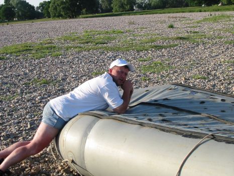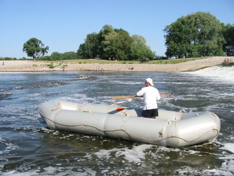 • Tom und Jens steigen am Dobritzer Damm auf's Boot