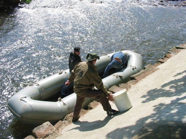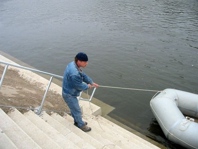 • Am Neumühlenwehr laden wir anständig Wasser ins Boot