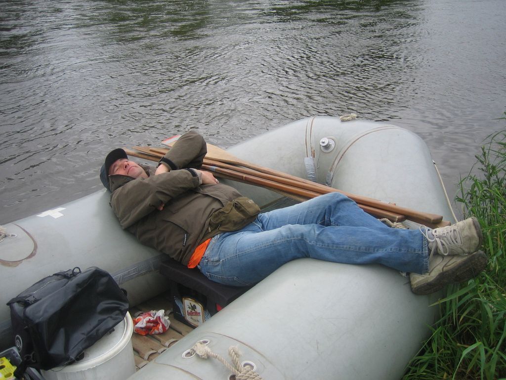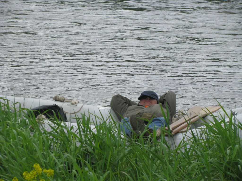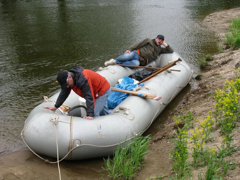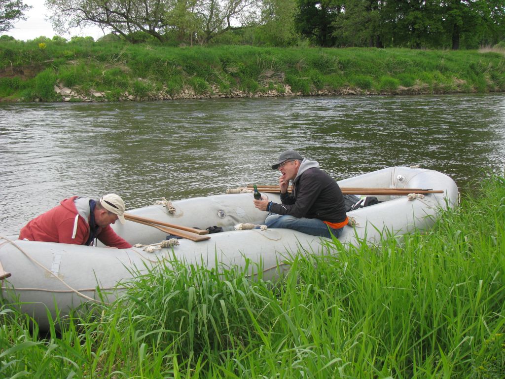 14.30 Uhr Anlegen zur Pinkelpause. Außerdem müssen wir unser Boot mal wieder aufblasen. Eigentlich war das doch dicht?!