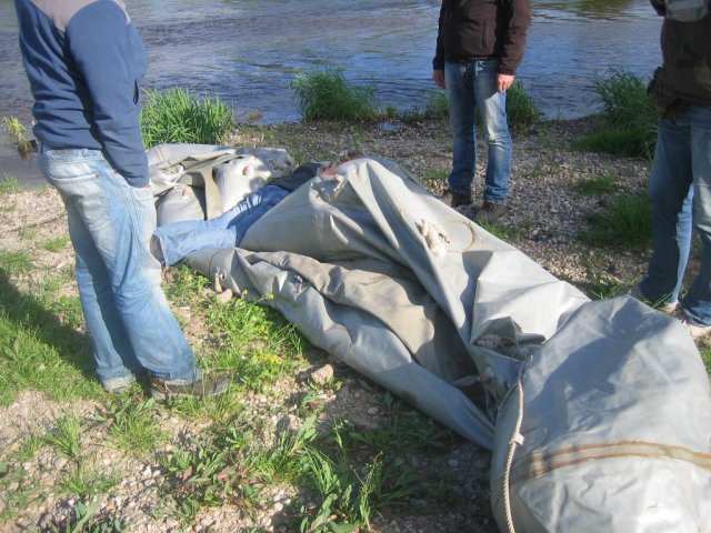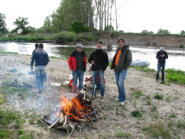 8.00 Uhr Treffen bei Thomas 9.00 Uhr Klar Schiff und einsetzen in Hainichen 9.15 Uhr 9.20 Frühstück! Es gibt Bacon mit Rührei vom Gaskocher. Eine Premiere. Tom möchte kein Frühstück weil wir in einer Teflon (Polytetrafluorethylen) Pfanne gebraten haben. Später löffelt er die Reste aus der Pfanne heraus. Leider hat der Gaskocher seinen Einsatz nicht überstanden. Da bleibt die Küche im nächsten Jahr kalt. 9.50 Uhr Wolfgang hat Küchendienst 10.00 Uhr Pinkelpause. Das wurde auch Zeit ... 10.15 Uhr kleine Lagerfeuer und Ablegen ;-) 10.20 Uhr Frank's Einsatz für das Gemeinwohl der Gruppe wird anerkennend von dieser ausgesprochen. Keine Ahnung um was es da ging. 10.45 Uhr Es ist Zeit für das erste Grillen. Anlegen! Feuer machen! 11.00 Uhr Kommando Zurück. Doch nicht Grillen. Der Platz hat eine schlechte Aura. Wir fahren weiter. 11.15 Uhr Da es jetzt nicht zu Essen gab trinken wir uns einfach einen. Es gibt "Scheißhaus" Likör. Wiederlich! Aber wenn's knallt ... 11.55 Uhr Wir versuchen es ein zweites mal mit Grillen. Dieser Platz scheint besser zu sein als der erste. Warum auch immer. Gibt's noch Bier? 13.25 Uhr Wir legen ab. Nach dieser Völlerei gibt es erst mal ein Verdauungsschnaps 13.50 Uhr Anlegen in Gruna. Was wollen wir hier? 14.30 Uhr Anlegen zur Pinkelpause. Außerdem müssen wir unser Boot mal wieder aufblasen. Eigentlich war das doch dicht?! 14.55 Uhr Was ist eigenlich in dem Behälter dort? Ha! Streusaltz aus Holgers Bulli. Soll noch einer sagen, wir sind nicht motiviert. 15.45 Uhr HALT! Alles Raus! Grillen! Feuer machen!