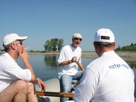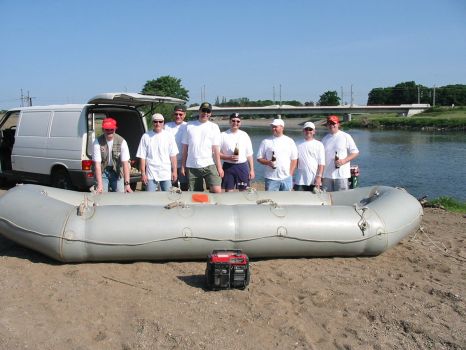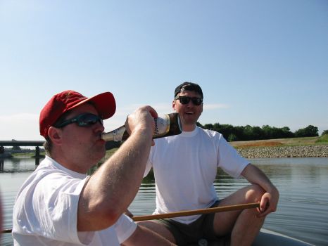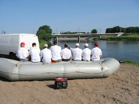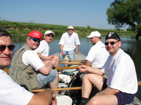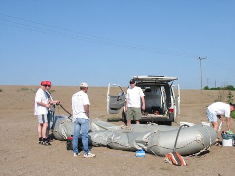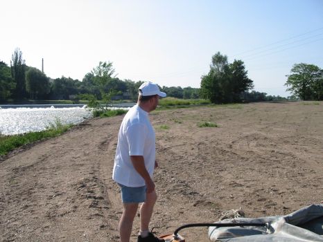 • Tom und Jens steigen am Dobritzer Damm auf's Boot
