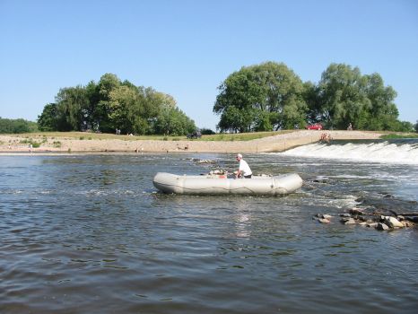 • Tom und Jens steigen am Dobritzer Damm auf's Boot